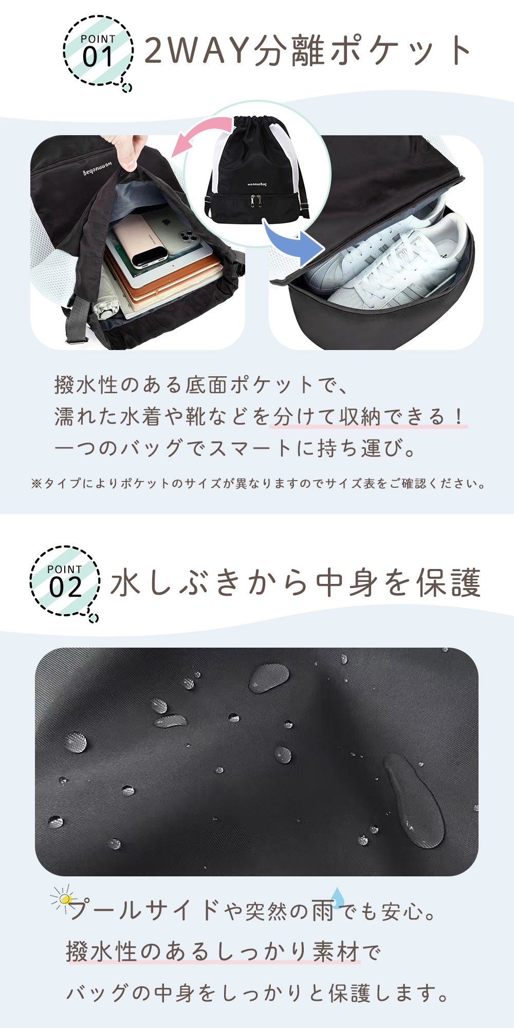 撥水素材で中身を保護!