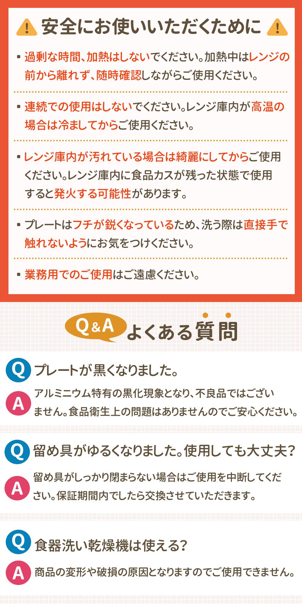 レンジ庫内から取り出す際にやけどをする恐れがあります。 お子さまのご使用はご遠慮ください。