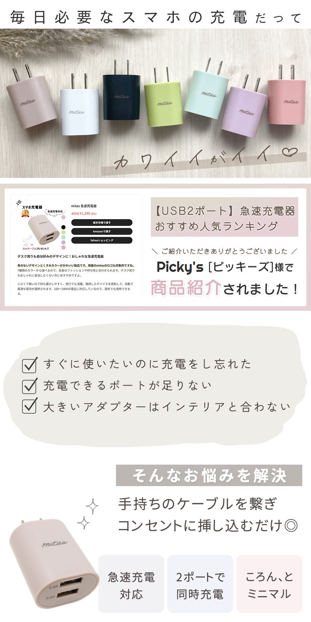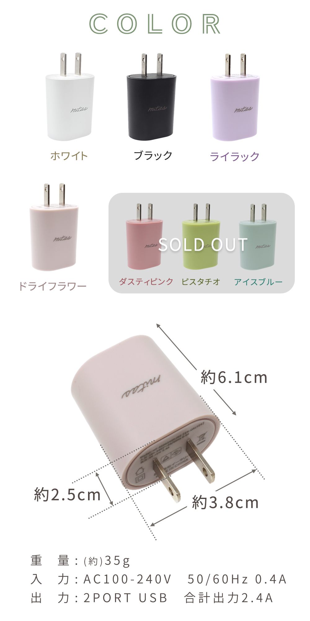 品名 ACアダプター 2ポート 2.4A