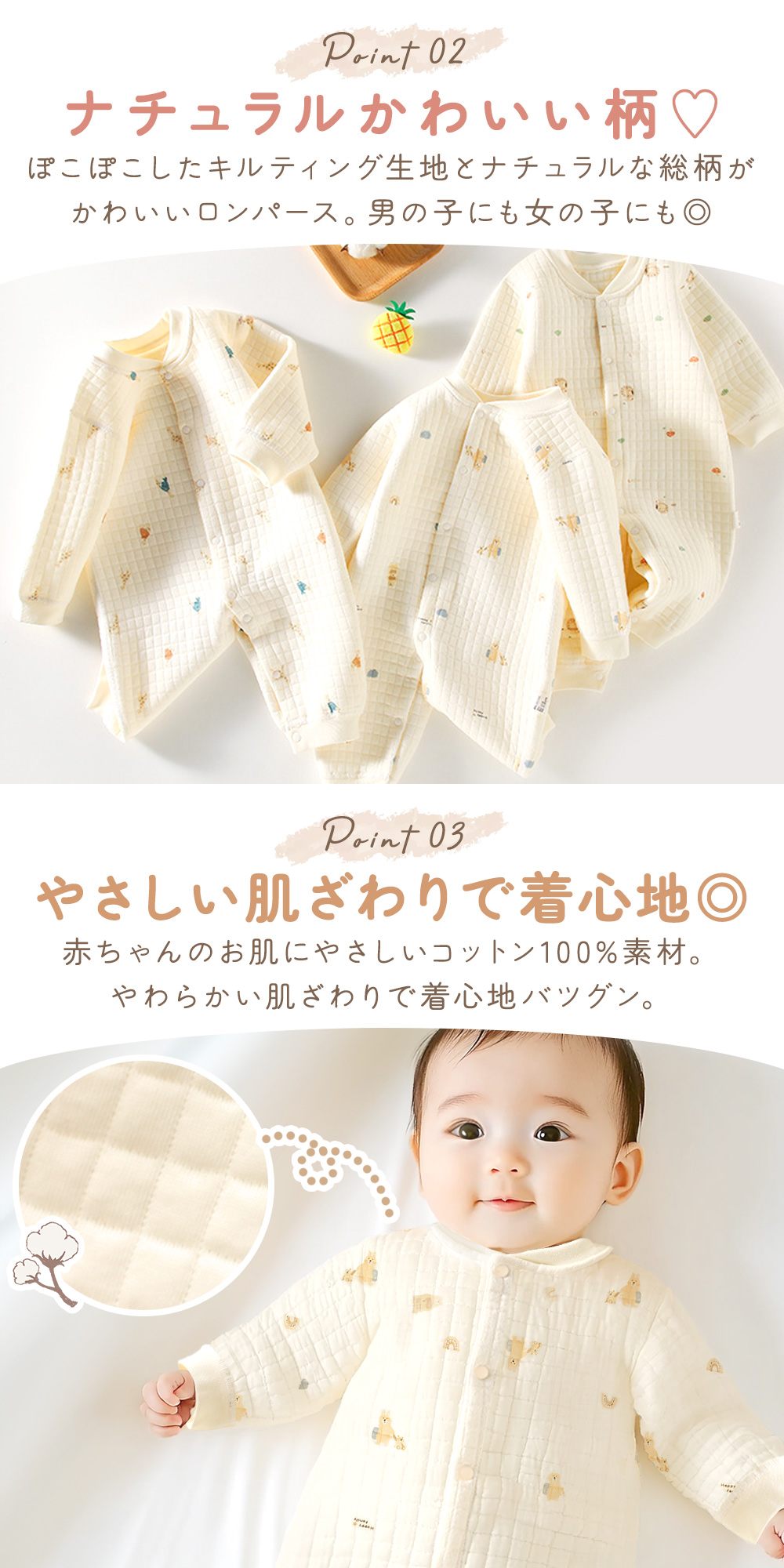 総柄コットンロンパース
