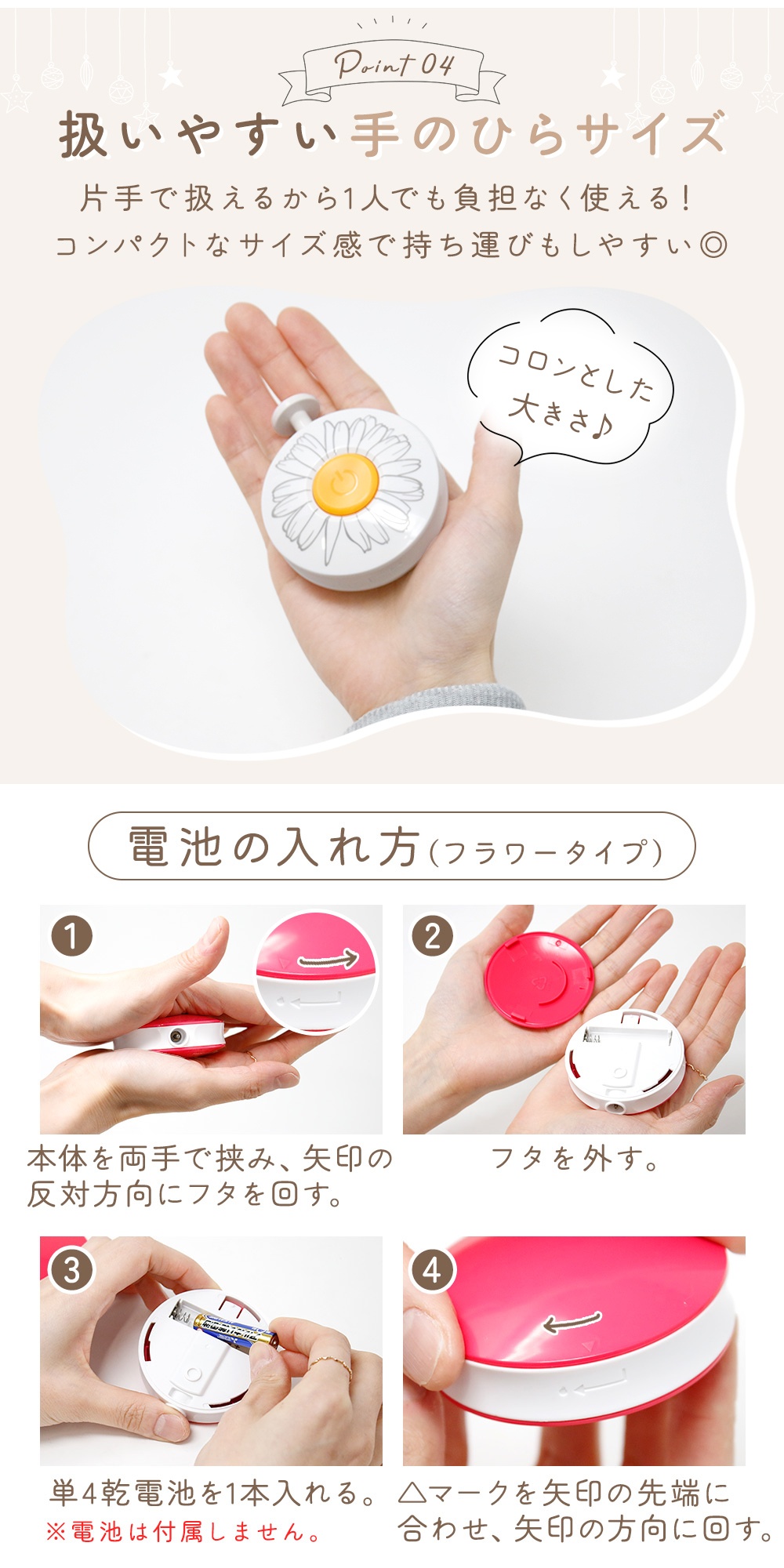 持ち運びに便利な手のひらサイズ
