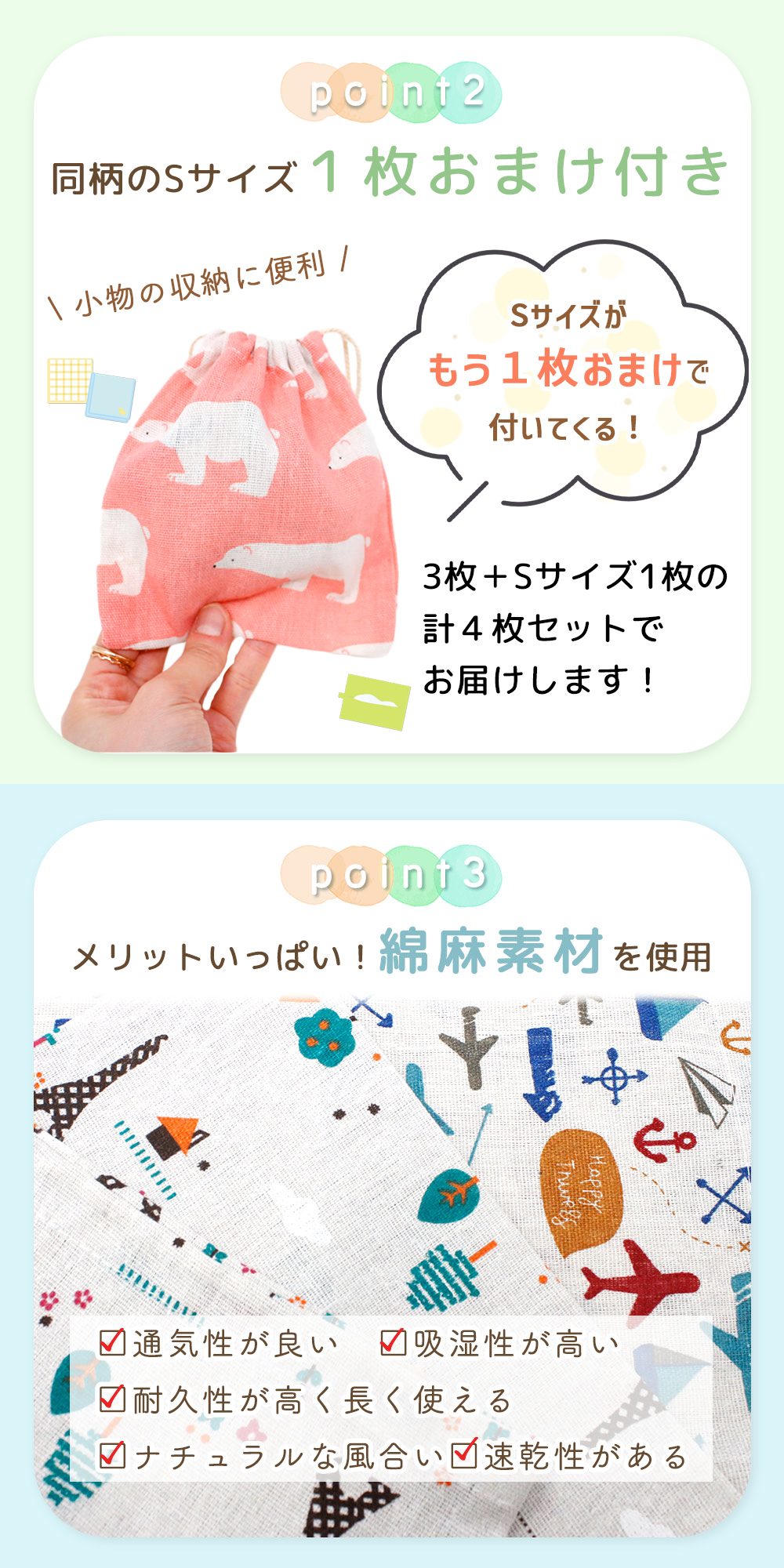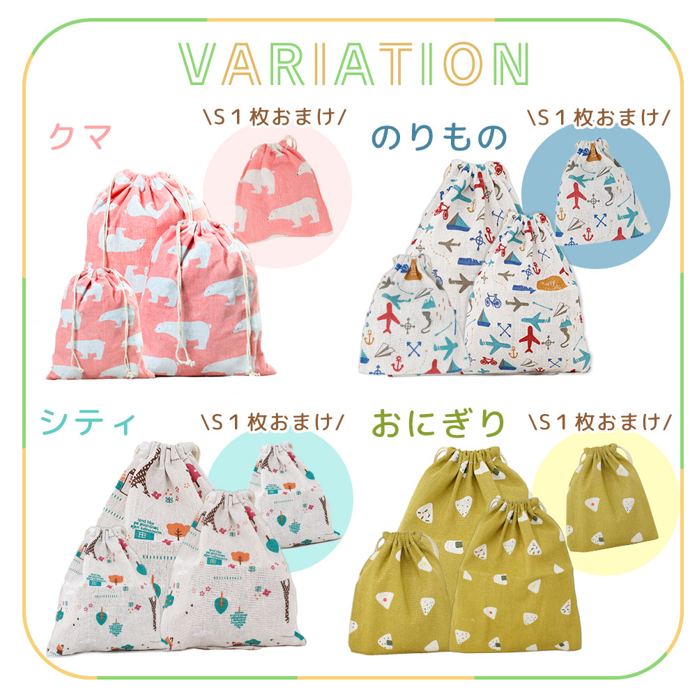 布巾着セット3枚 1枚おまけ付き