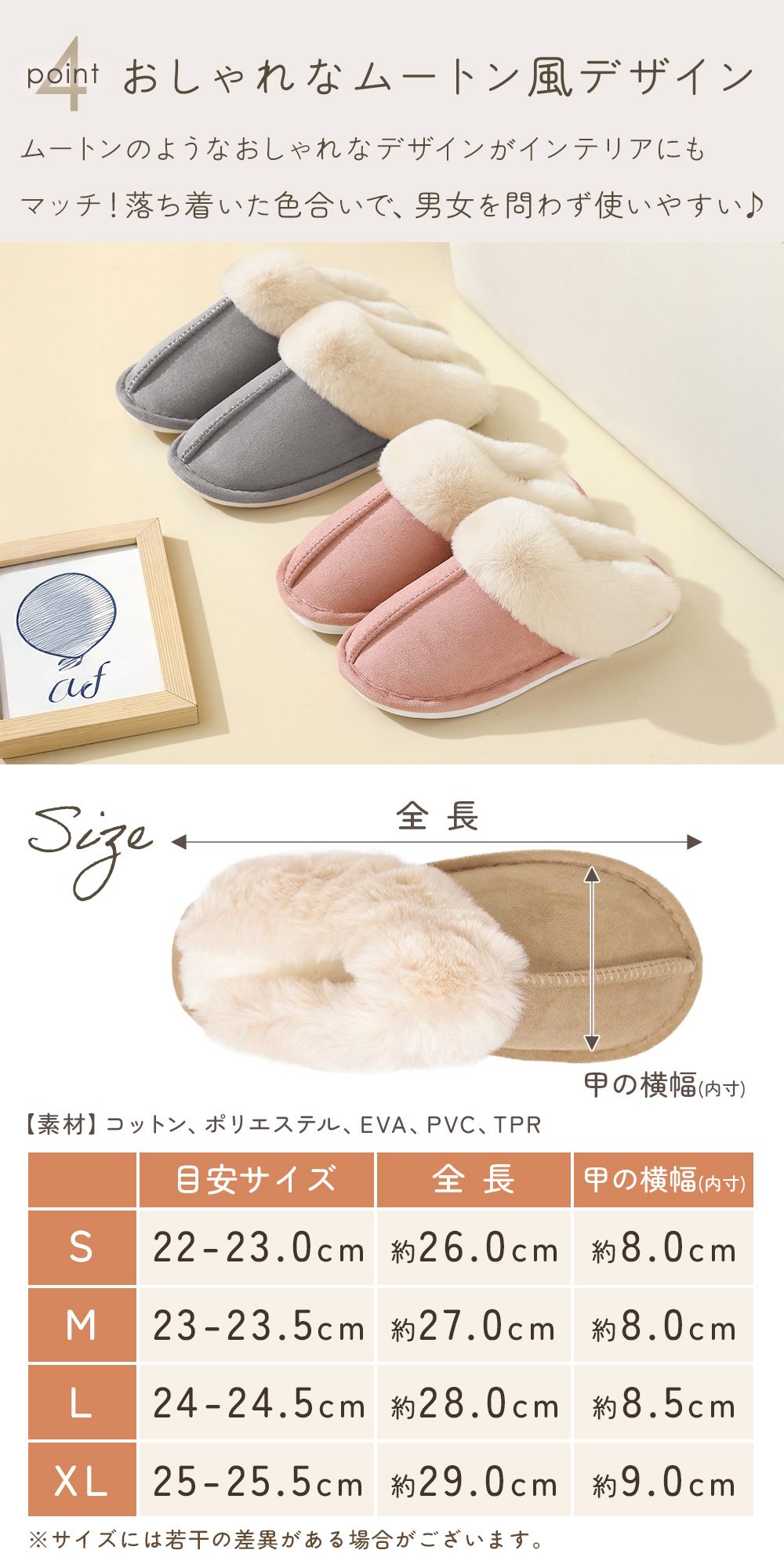 • 品名 ムートン風スリッパ