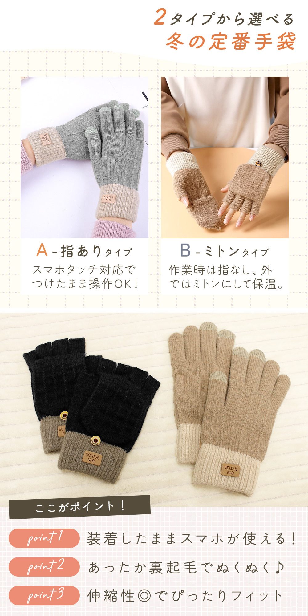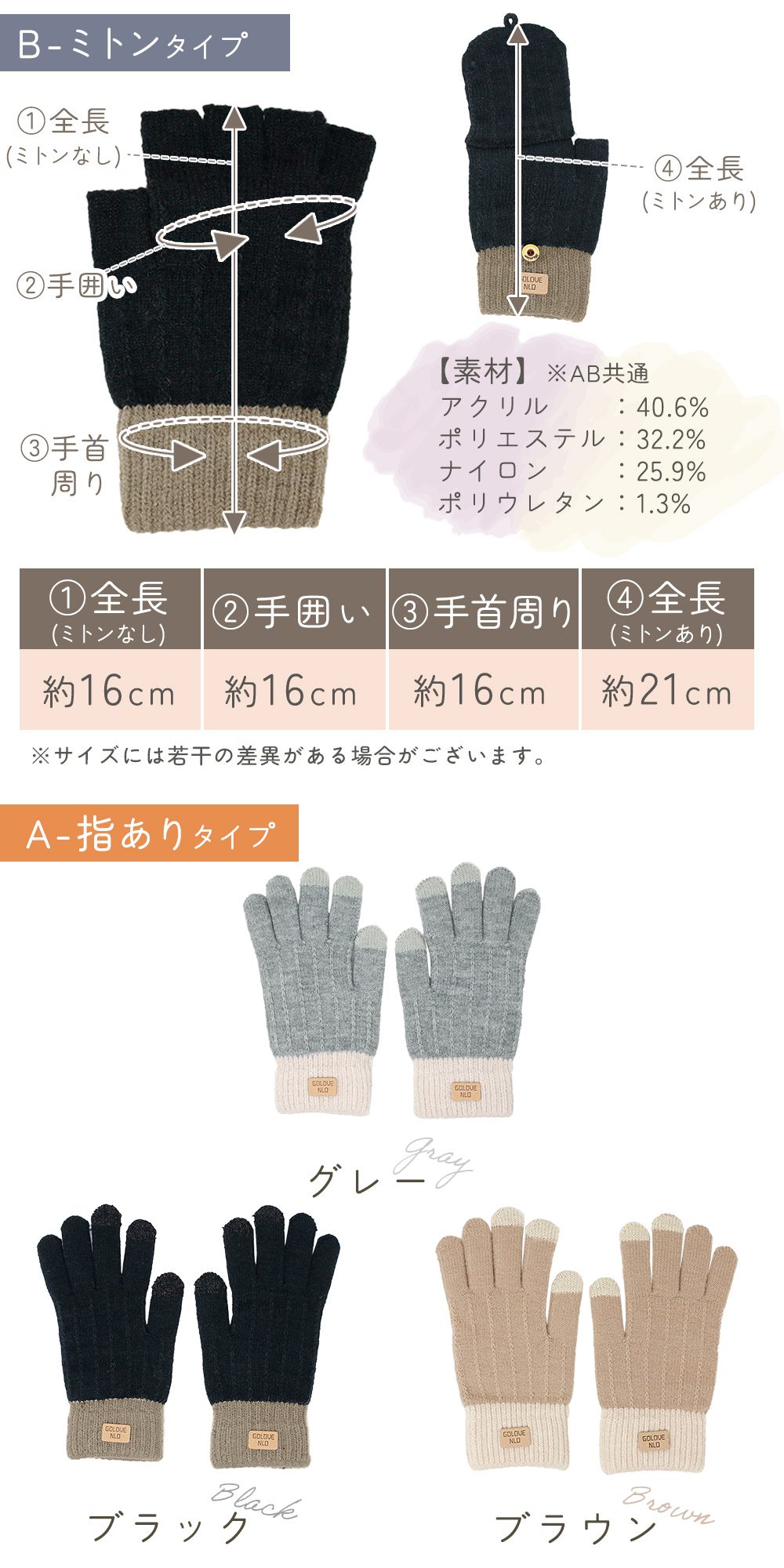 • 指ありと指なしが選べる