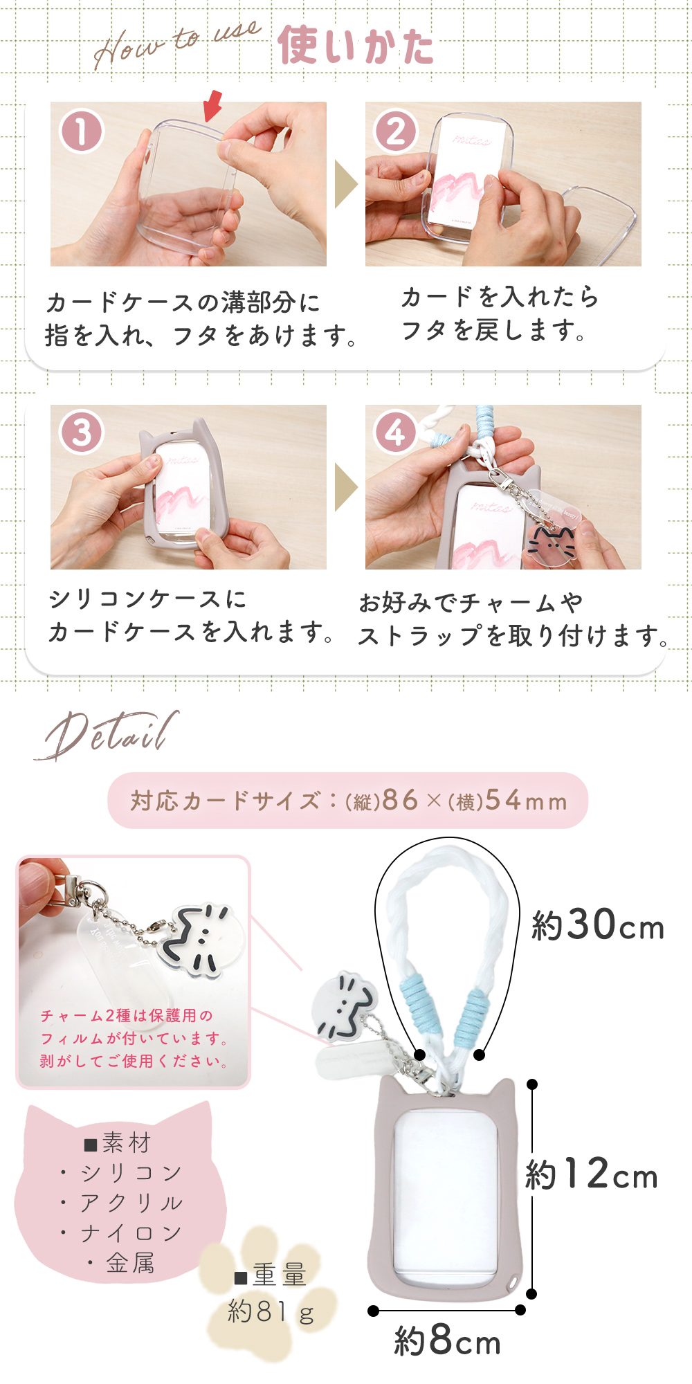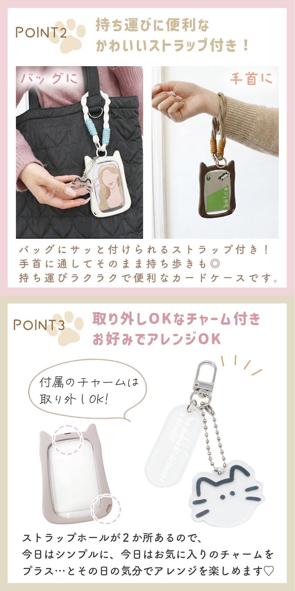 ネコチャーム付きパスケース