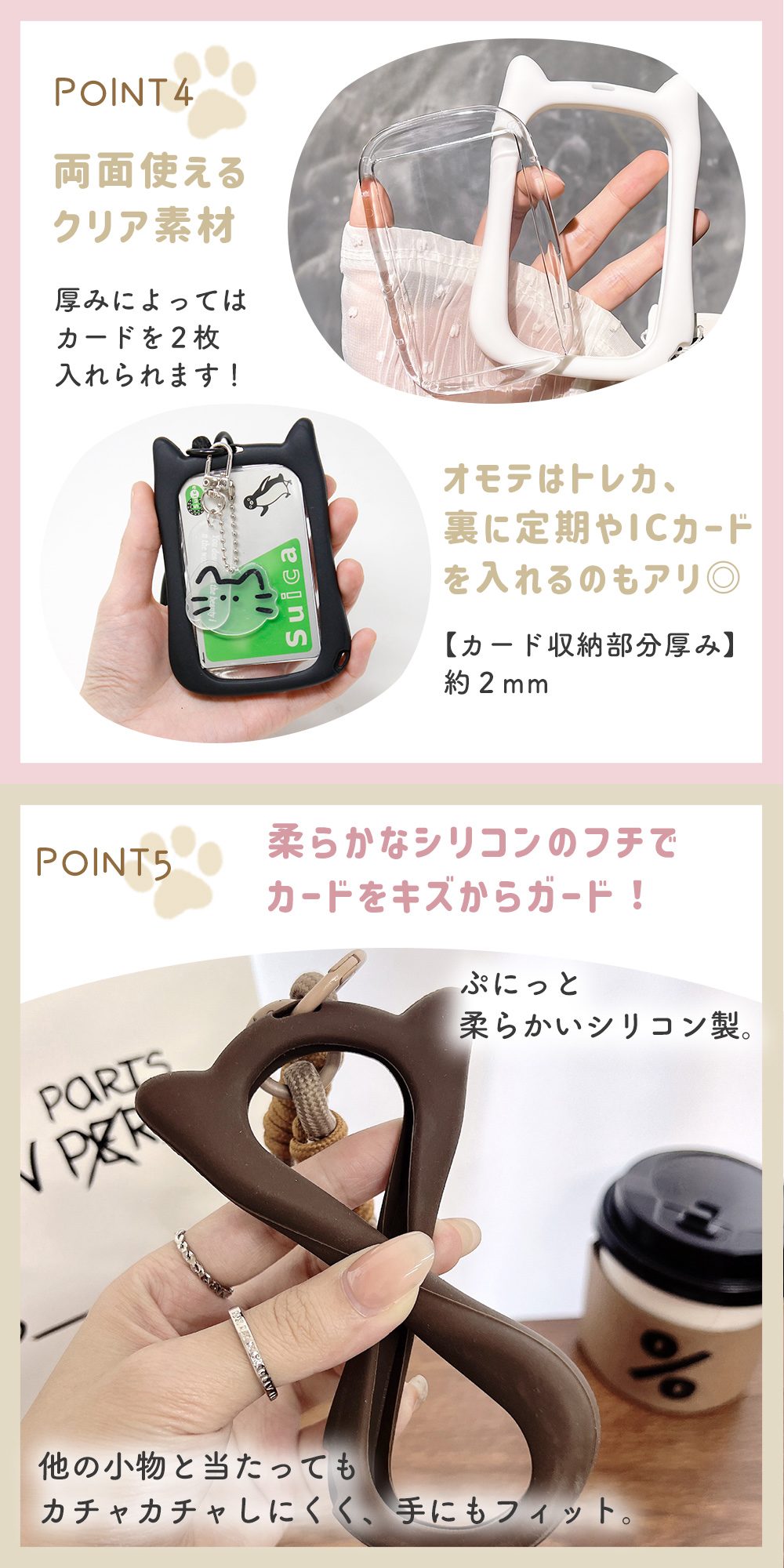 ネコ耳ケースがかわいいパスケース