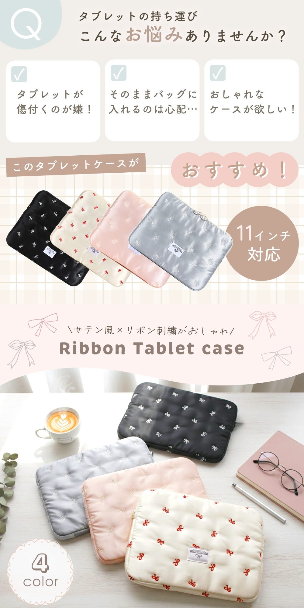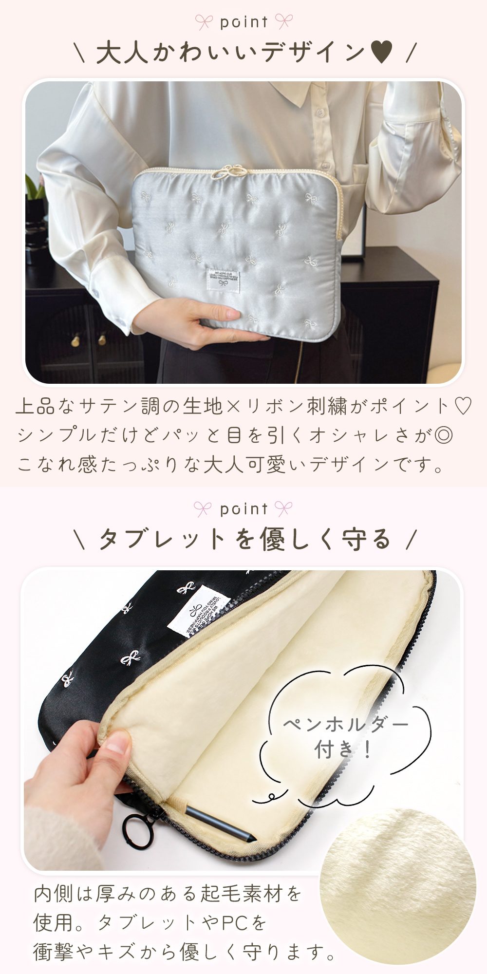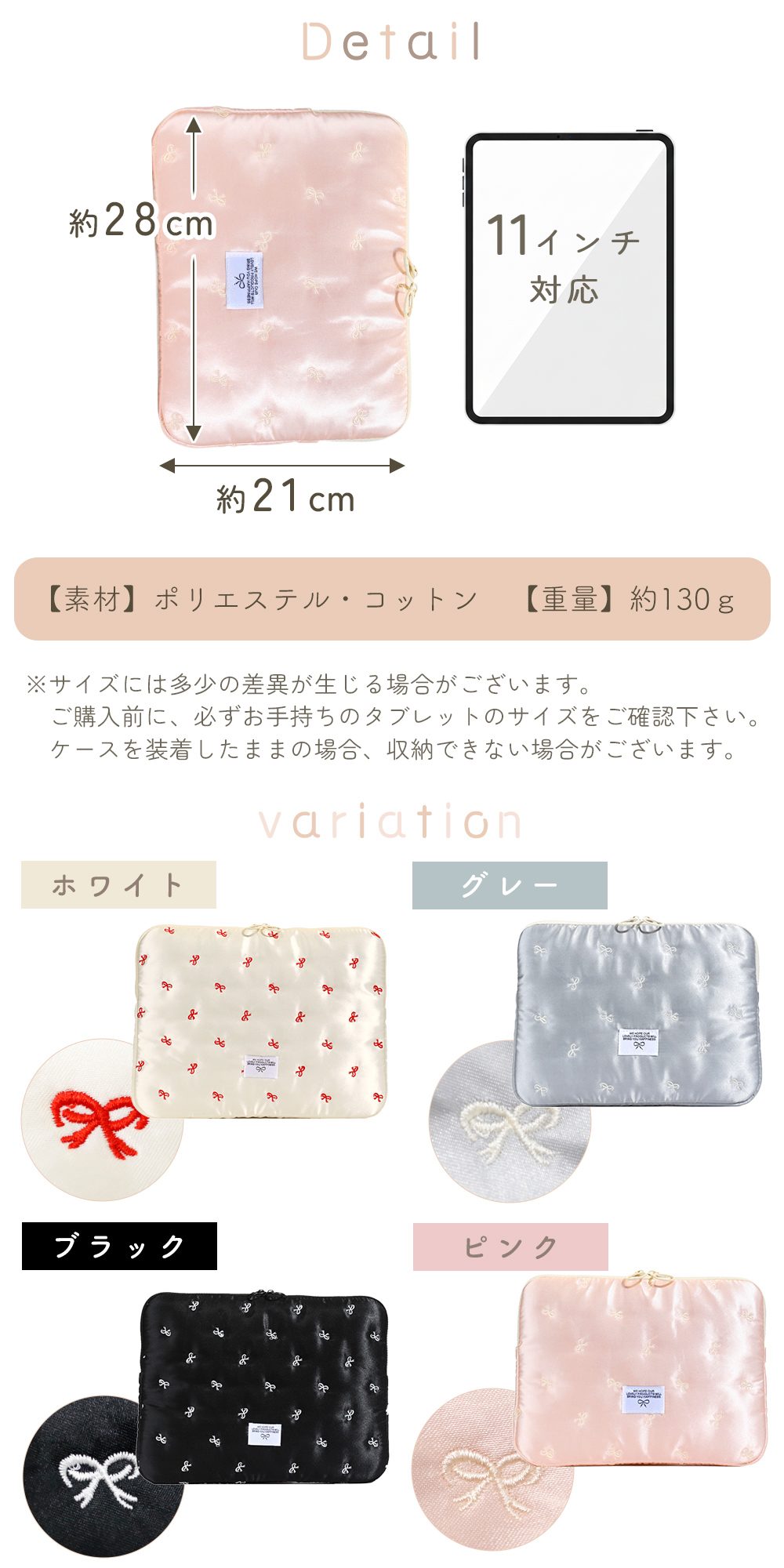 • 品名 リボン刺繍タブレットケース