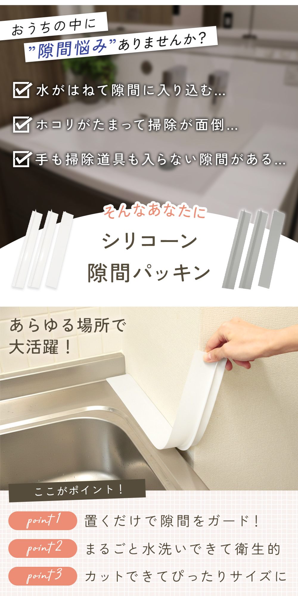 キッチンや洗面所の隙間埋めに最適