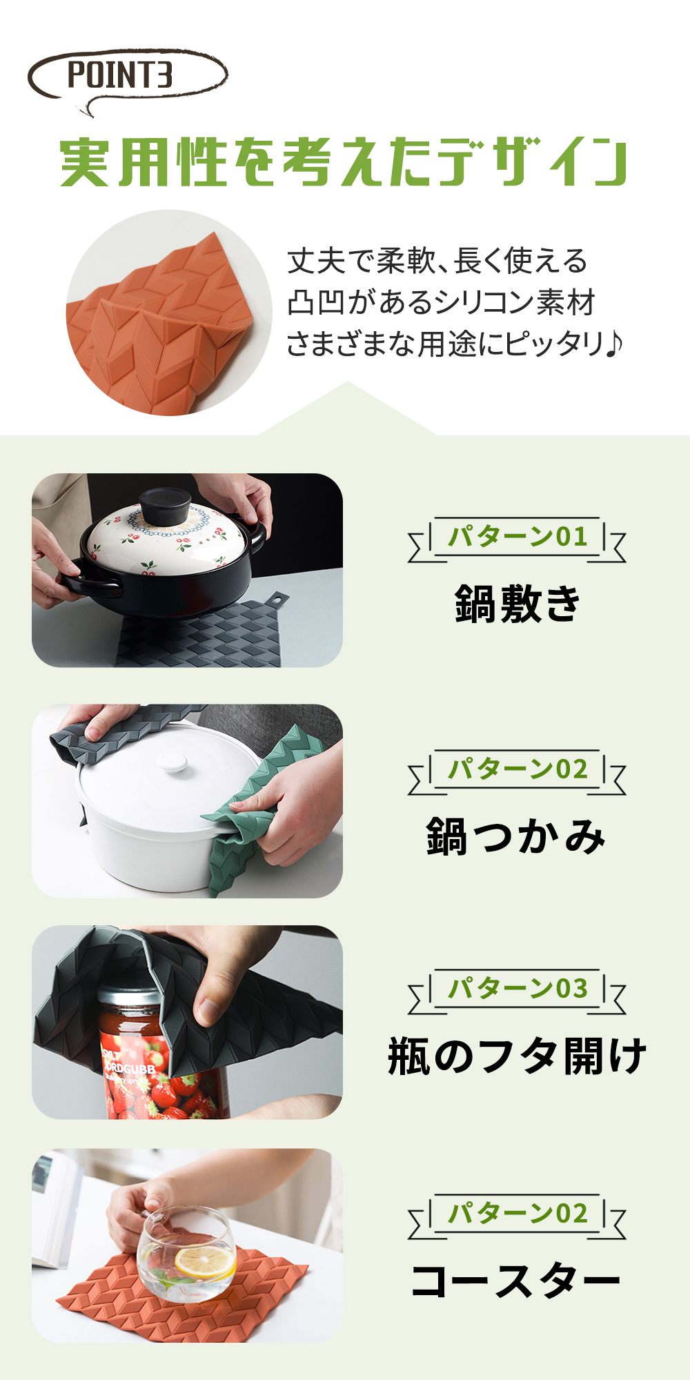 鍋敷、鍋つかみ、瓶の蓋開けetc様々なシーンで活躍!