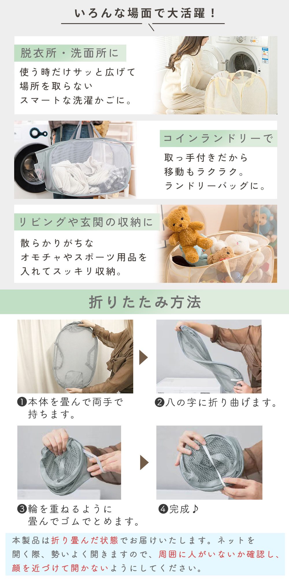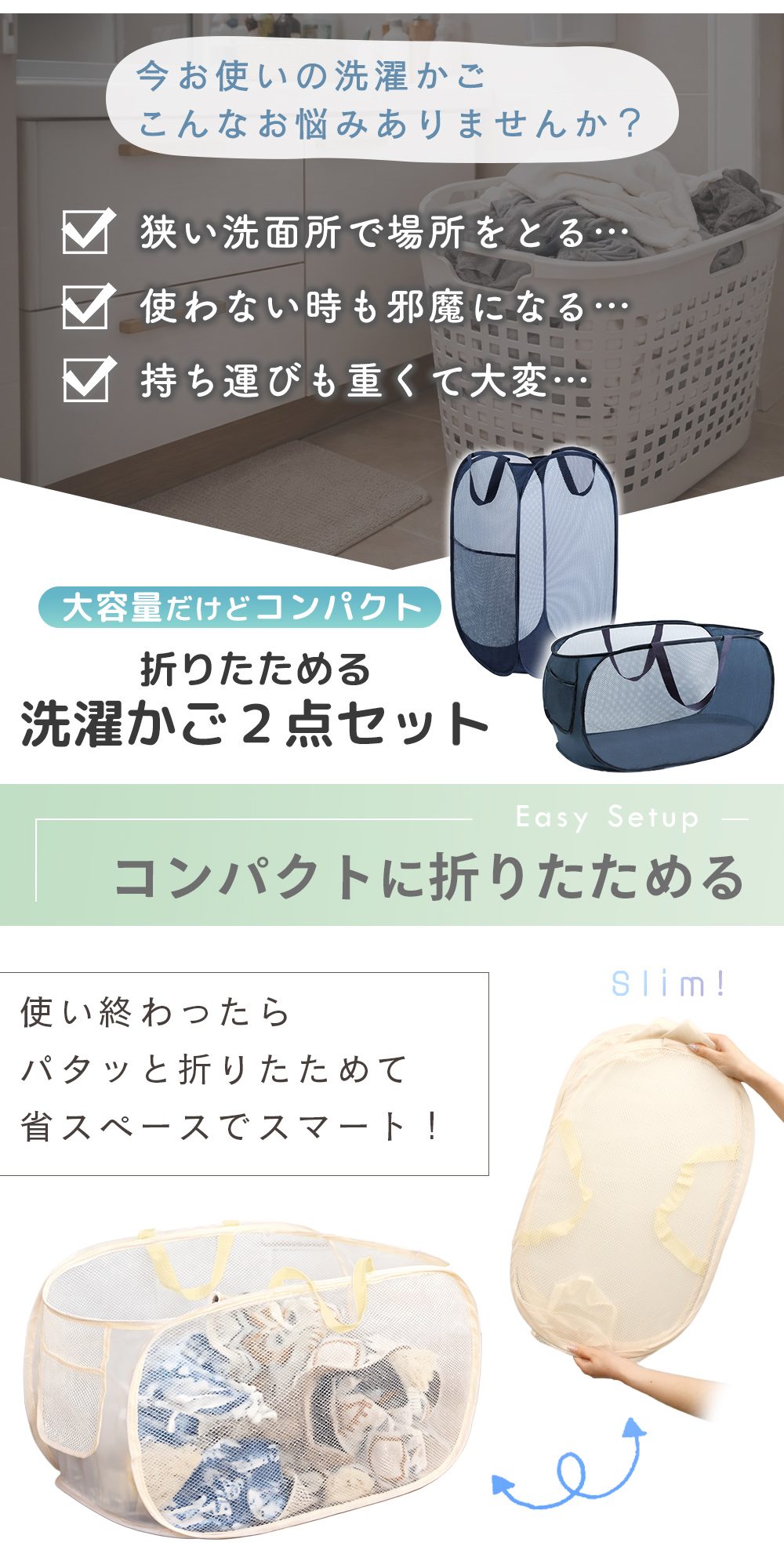 折りたためる洗濯カゴ 2点セット