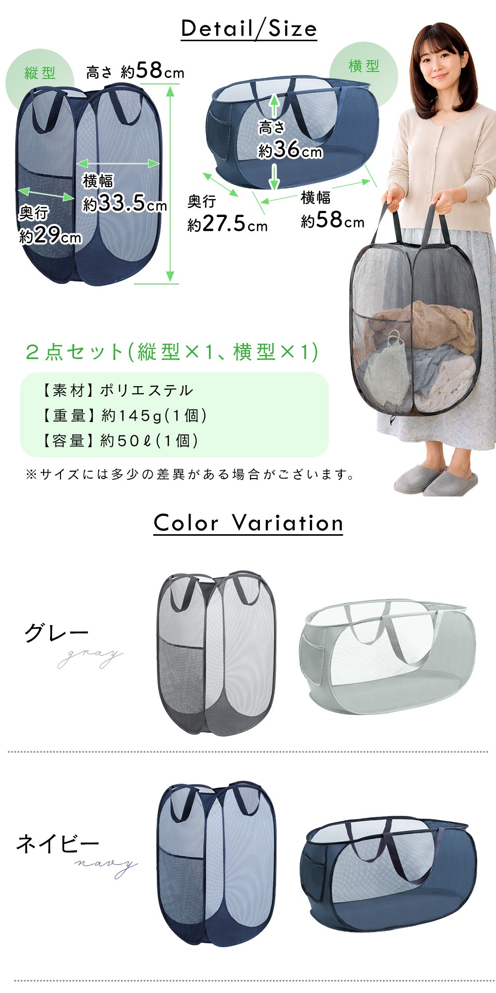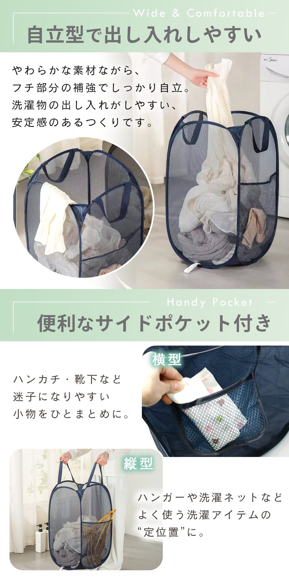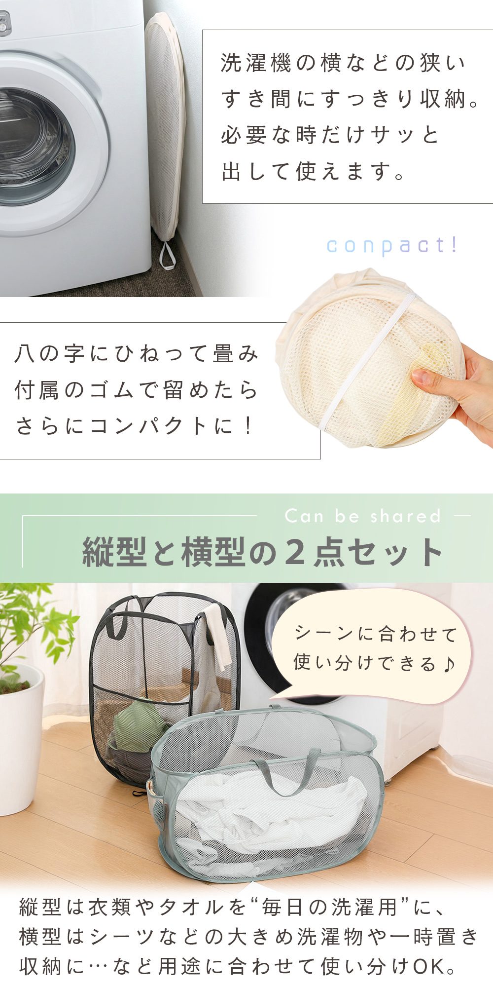 横型と縦型の洗濯かご2点セット