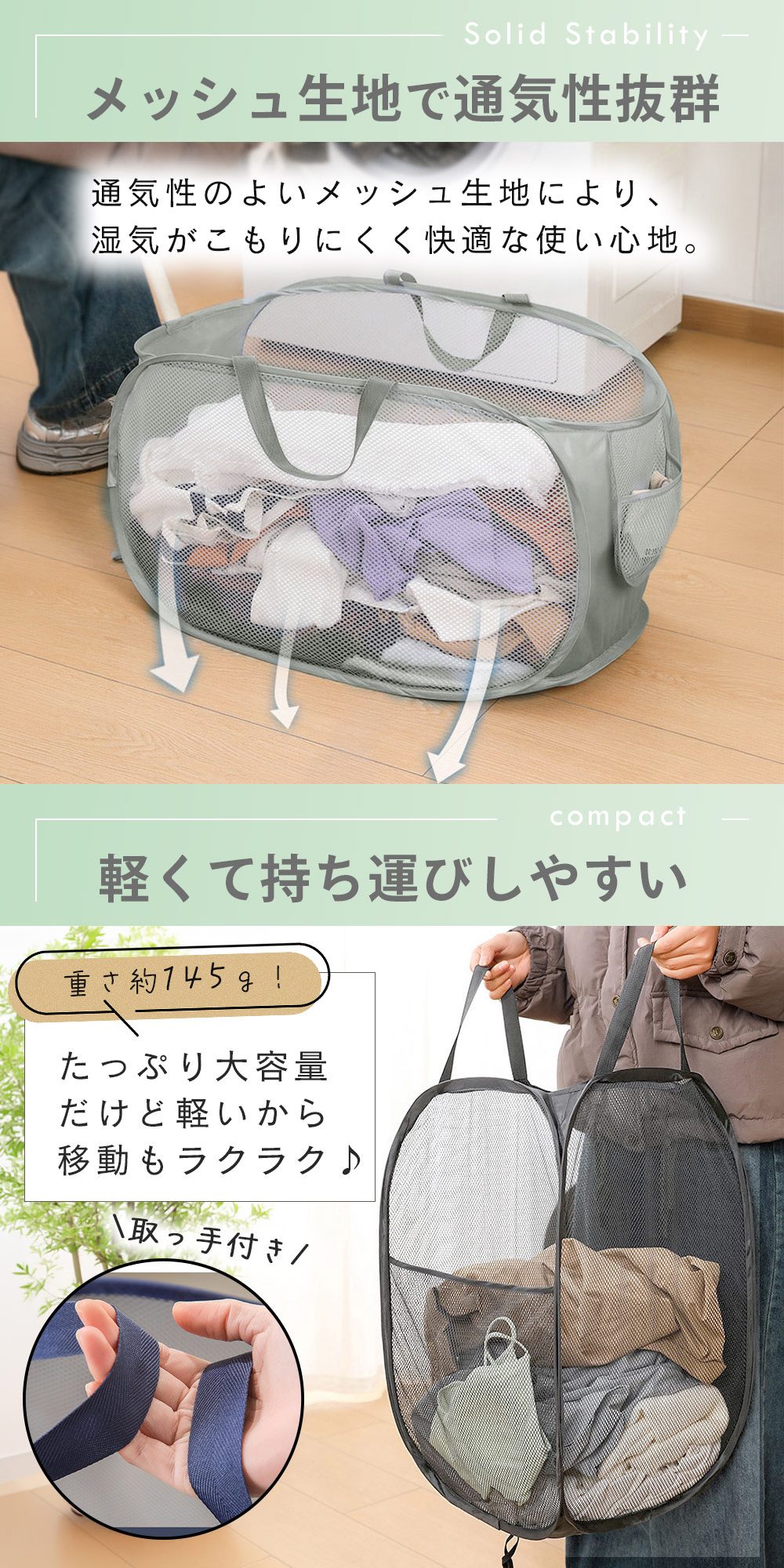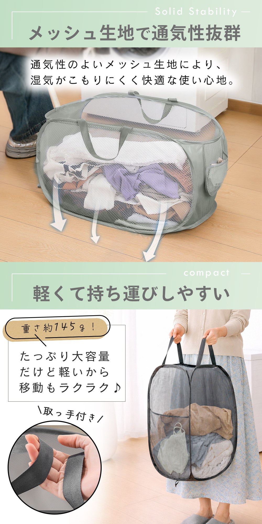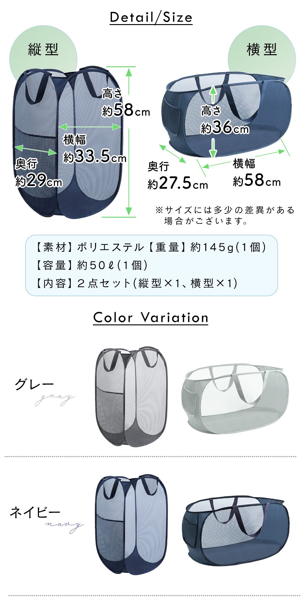 横型と縦型の洗濯かご2点セット