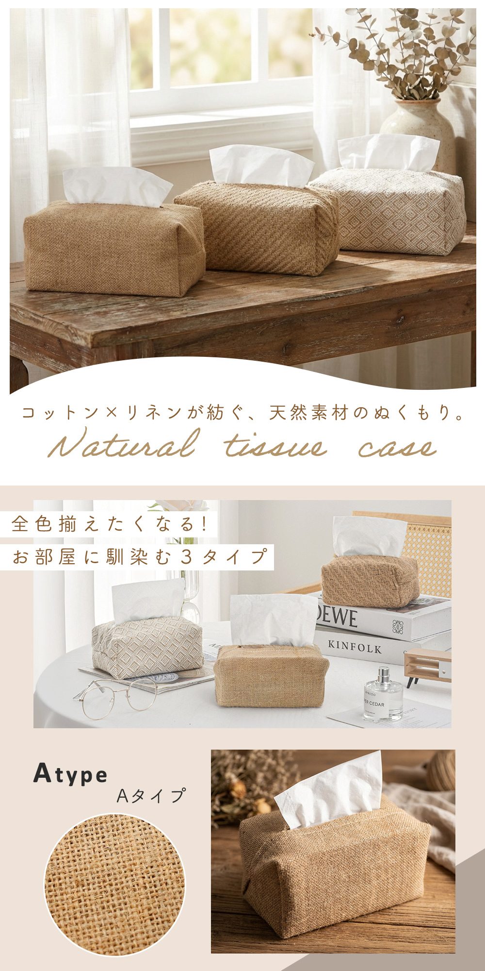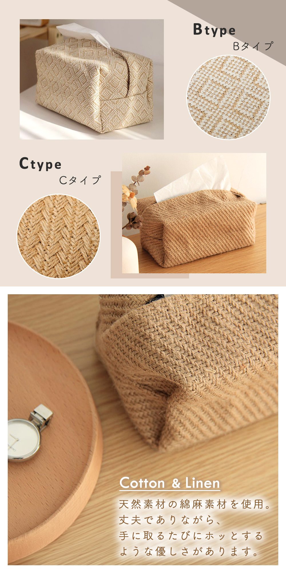 • 品名 ティッシュケース ナチュラル