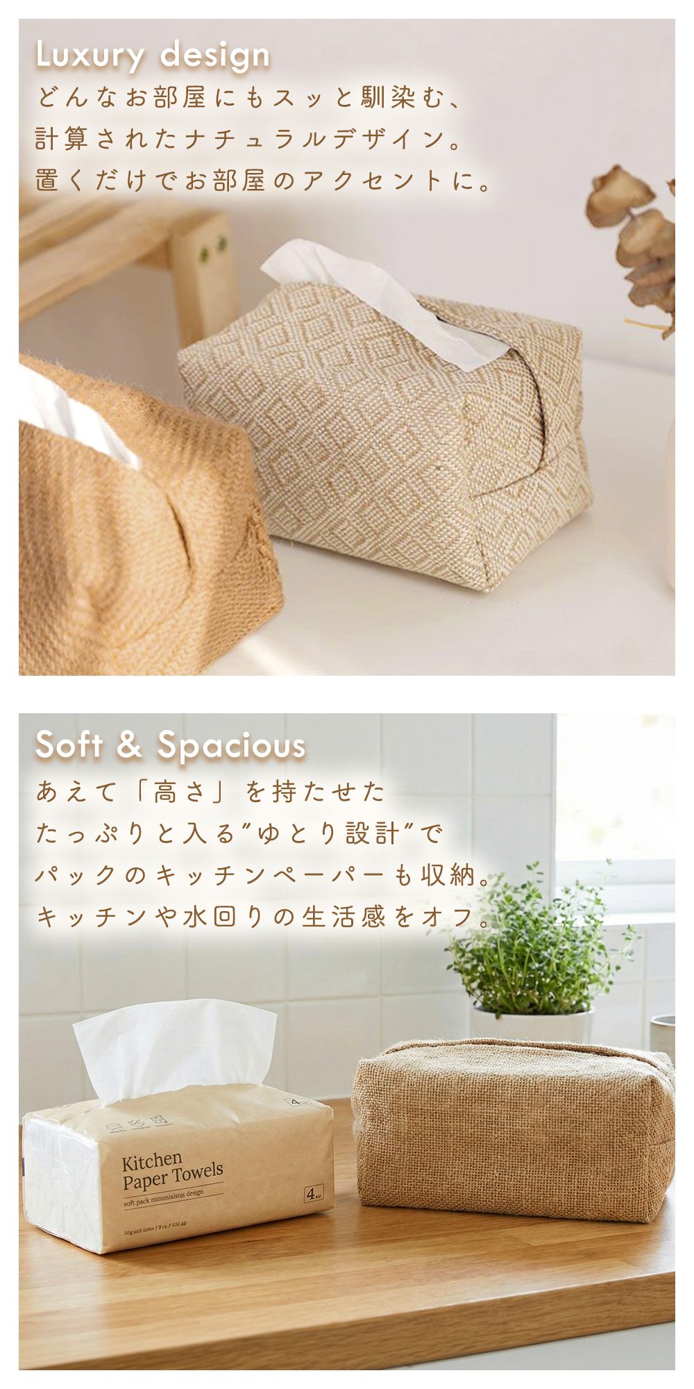 • 高さがあるから大きめティッシュも入る!