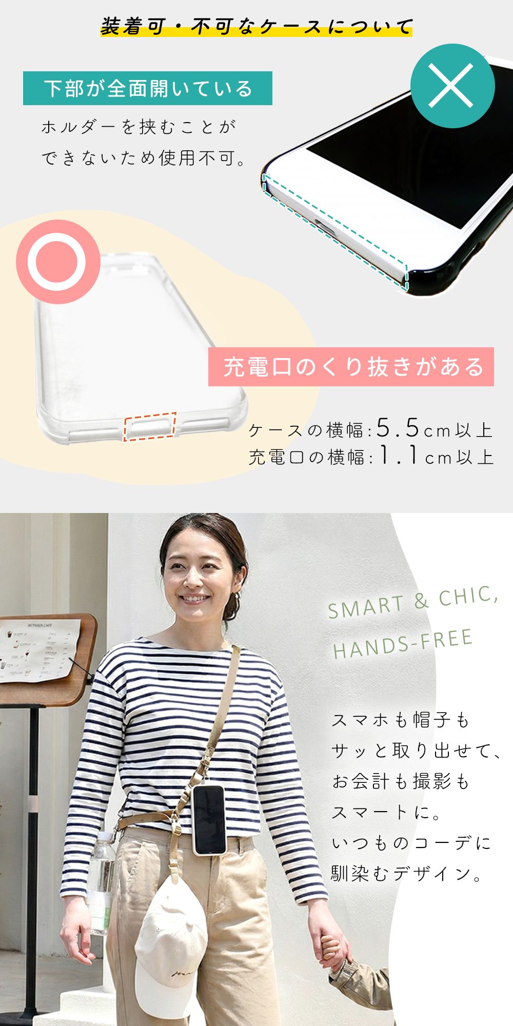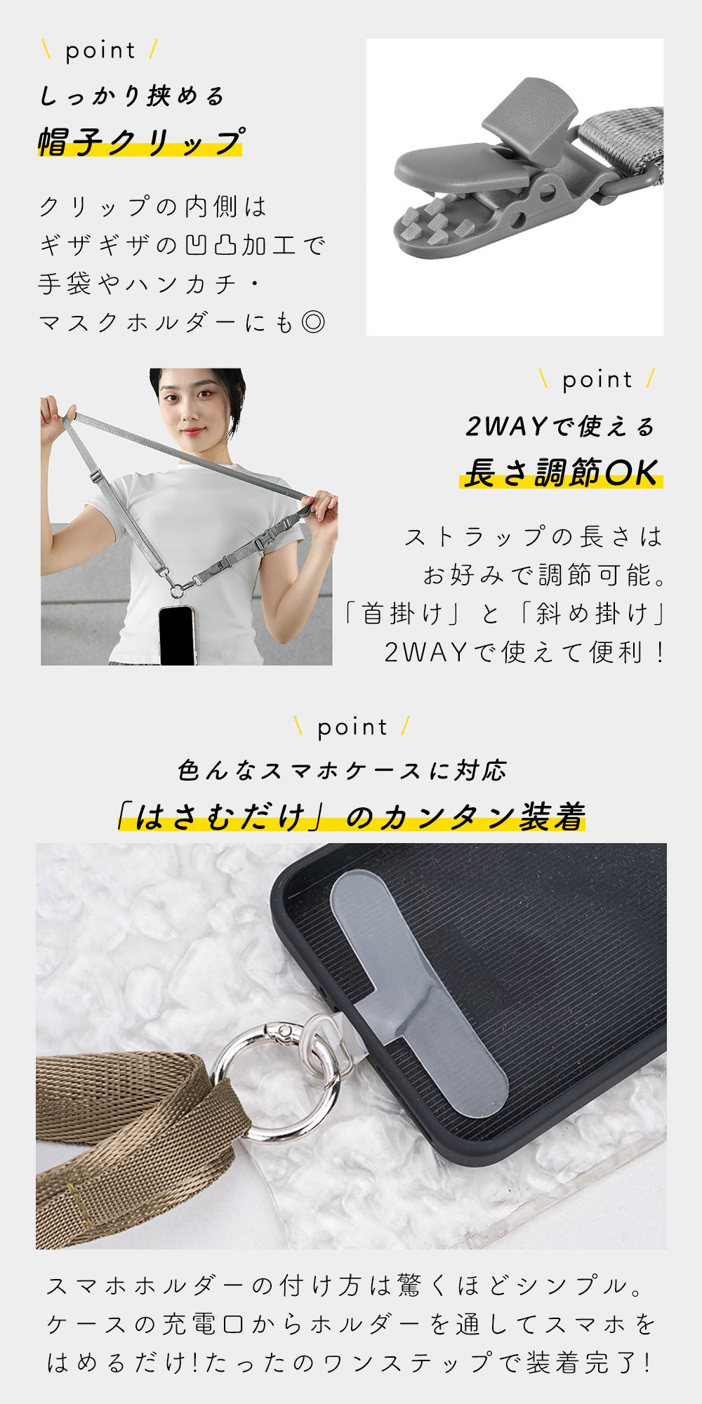 丈夫なストラップで食い込みにくい◎