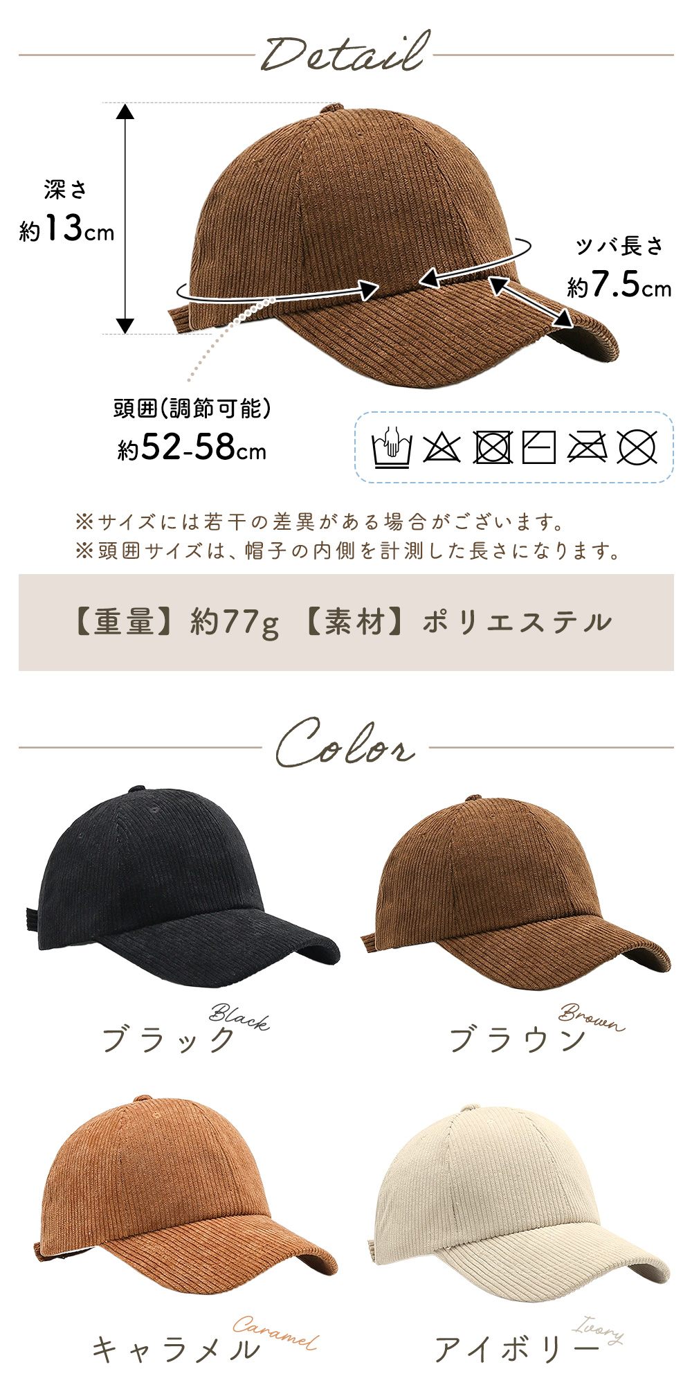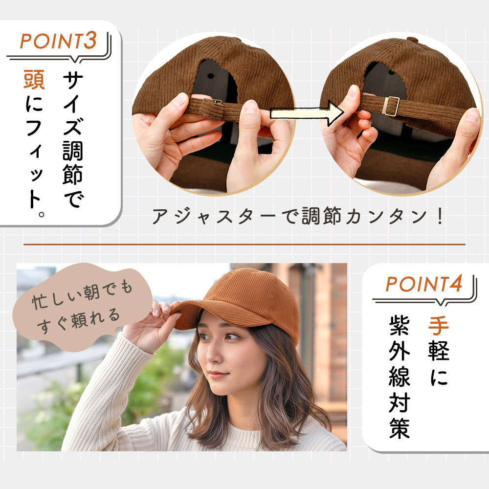 コーデュロイキャップ