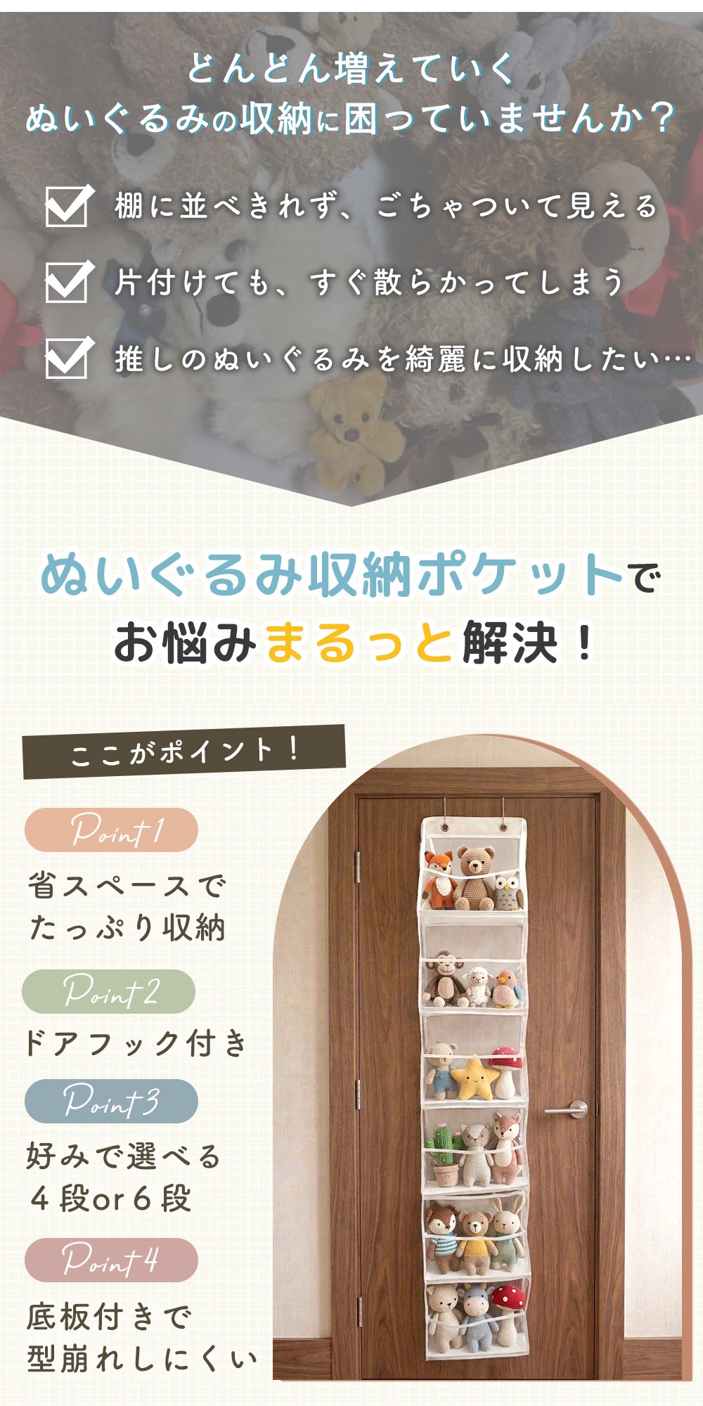 ぬいぐるみの収納や推し活に使えるウォールポケット