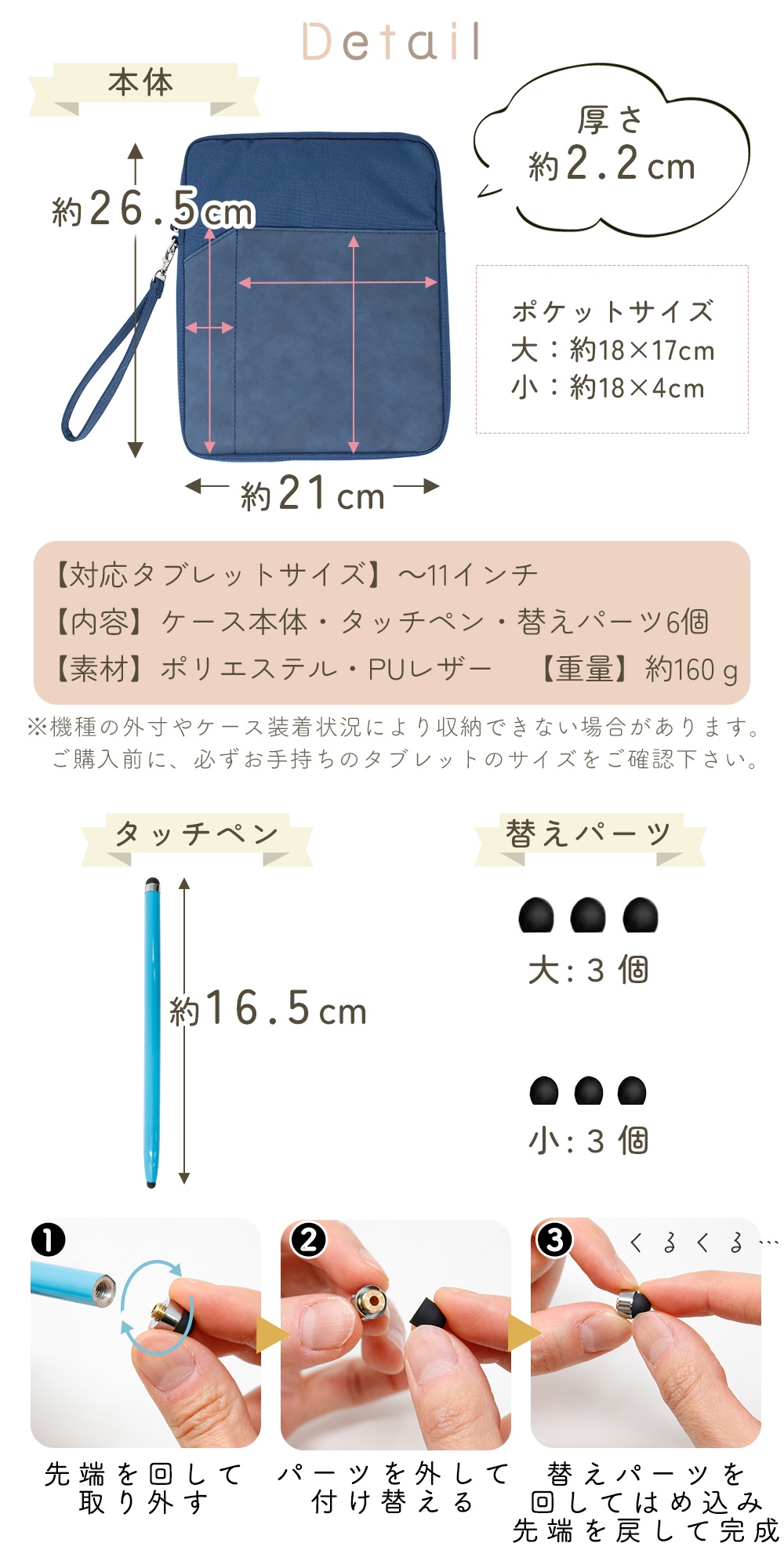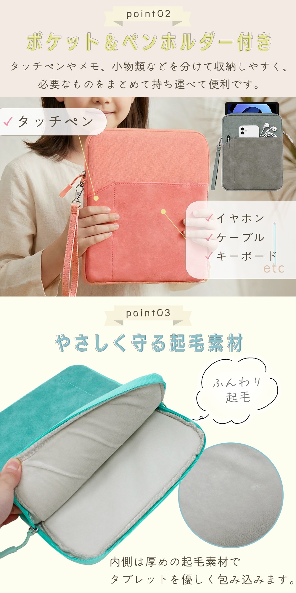 シンプルタブレットケース タッチペン付き