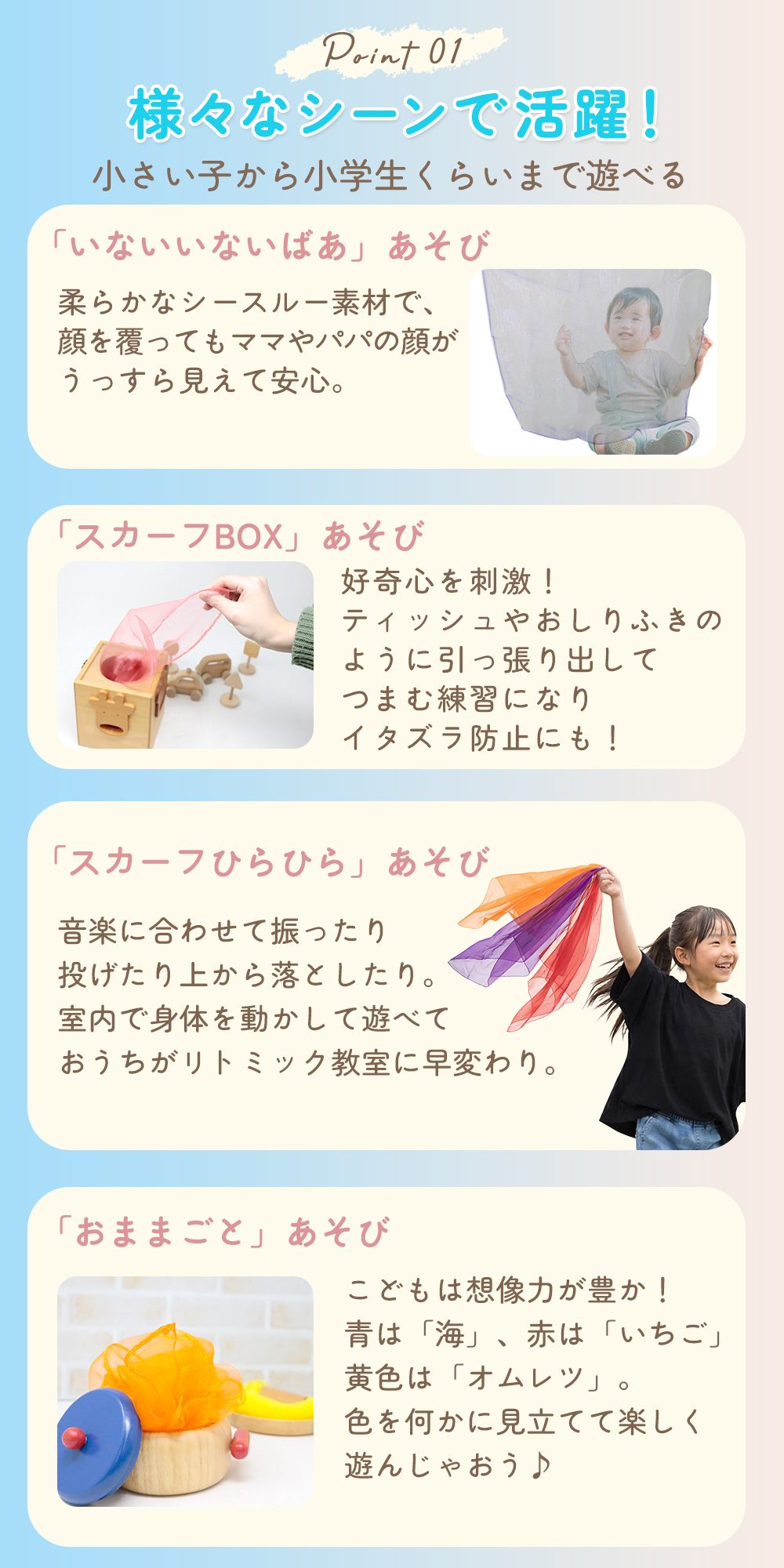 小学生まで長く使えて、遊び方無限大!