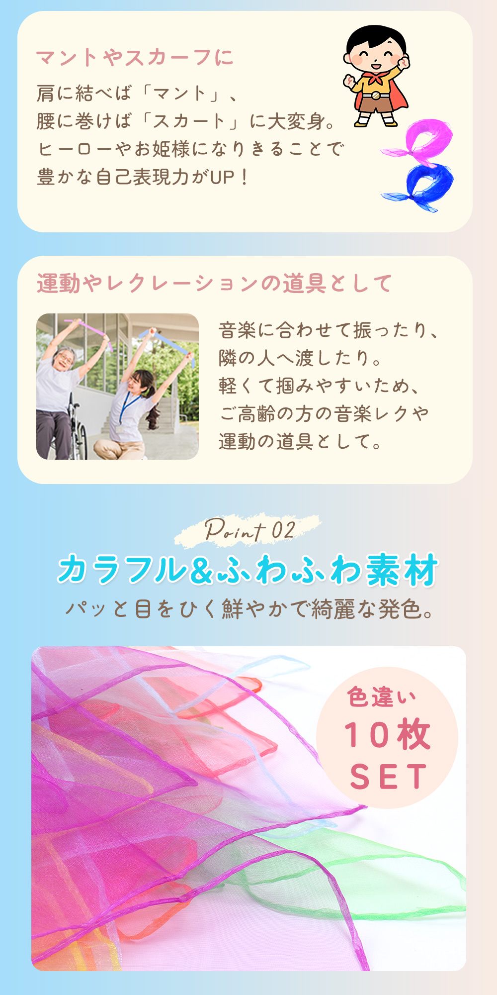 フワっと軽いシフォン生地が使いやすい